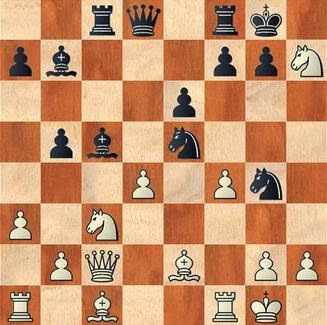 The e5 Knight cannot be captured: 17. fxe5 Qxd4+, 18. Kh1 Qg1+, 19. Rxg1 Nf2 mate.